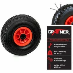 Grafner® Sackkarrenrad Bollerwagenrad 3.00-4 PU Vollgummibereifung FlatFree Kunststoff Felge