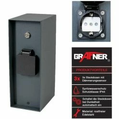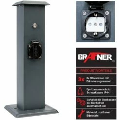 Grafner® Steckdosensäule Anthrazit Mit Dämmerungssensor Edelstahl Gartensteckdose Energiesäule