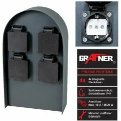 Grafner® Steckdosensäule Dämmerungssensor Anthrazit Mit 4 Außensteckdosen Edelstahl Gartensteckdose