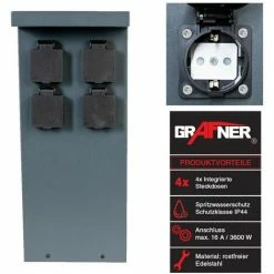 Grafner® Steckdosensäule Mit 4 Außensteckdosen Edelstahl Gartensteckdose Energiesäule