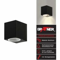 Grafner® Aluminium-Wandlampe Down Außenlampe Schwarz WL10748