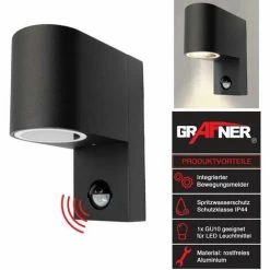 Grafner® Aluminium Wandlampe Mit Bewegungsmelder 37WBPIR Wandleuchte Lichtschein Down/Unten Schwarz